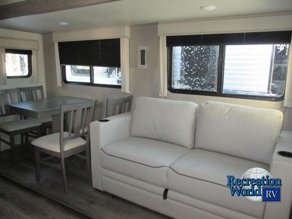 The popular 243RBS is the ideal couple’s coach! This floorplan boasts a full-size super slide with both a dinette and sofa, a spacious rear bathroom with a walk-in shower, extra-large pantry/wardrobe storage, a breakfast bar and private bedroom. The half-ton friendly towing weight and under 30’ real length makes this camper perfect for cross country travel or local weekend getaways!