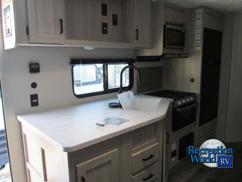 The popular 243RBS is the ideal couple’s coach! This floorplan boasts a full-size super slide with both a dinette and sofa, a spacious rear bathroom with a walk-in shower, extra-large pantry/wardrobe storage, a breakfast bar and private bedroom. The half-ton friendly towing weight and under 30’ real length makes this camper perfect for cross country travel or local weekend getaways!