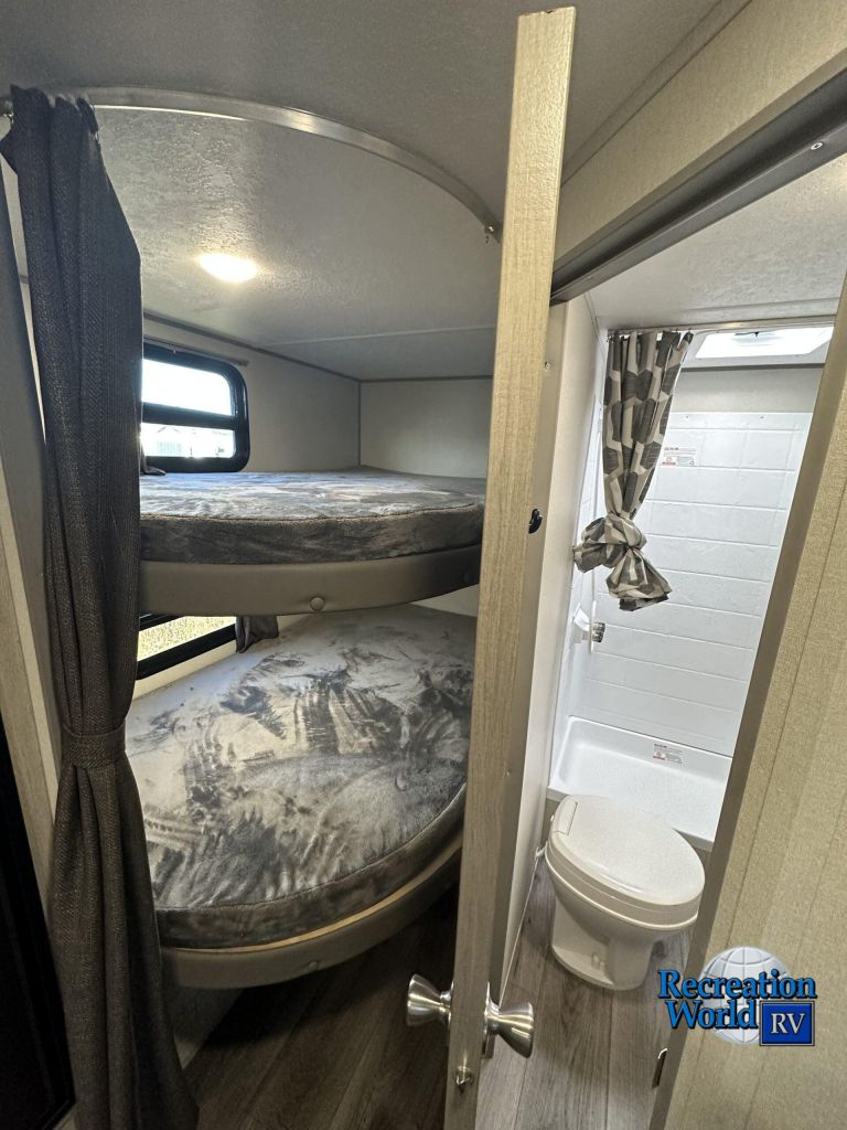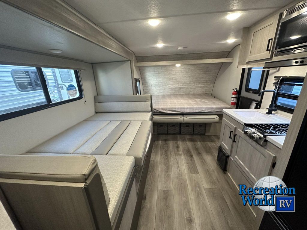 The 184BHS is the most versatile bunk house! This floor plan is towing friendly and suitable for most tow vehicles. Our double over double bunk beds offer more comfort and flexibility than traditional single bunks. The family friendly U-shape dinette slide out opens up this floor plan and provides storage underneath the benches as well as additional sleeping utility. Our fold down queen Murphy bed is the ultimate space safer! Enjoy the comfort and convenience of a sofa when the bed is stowed.