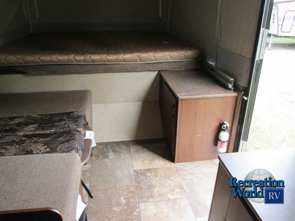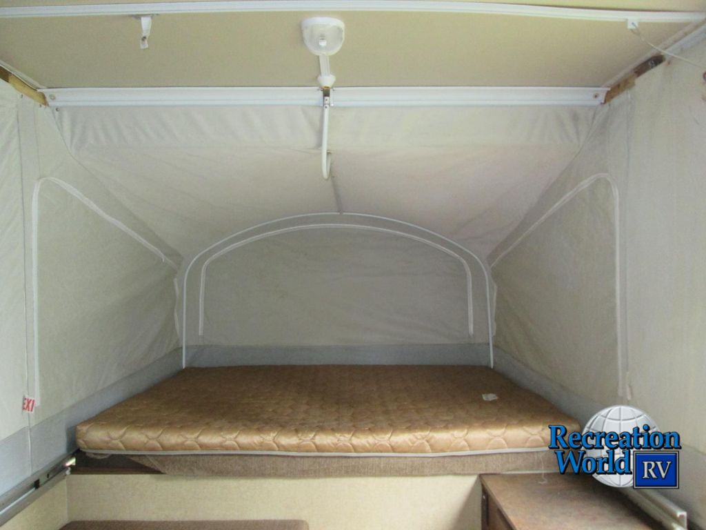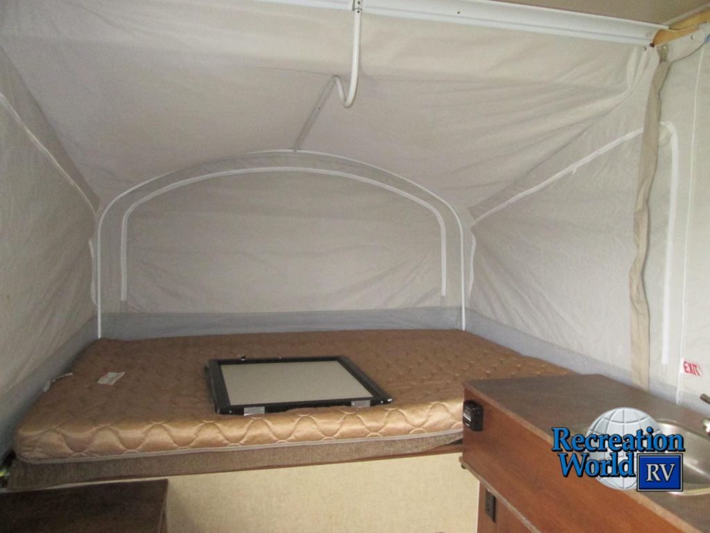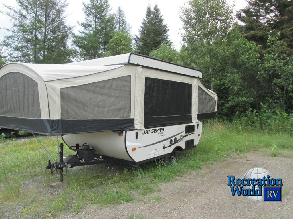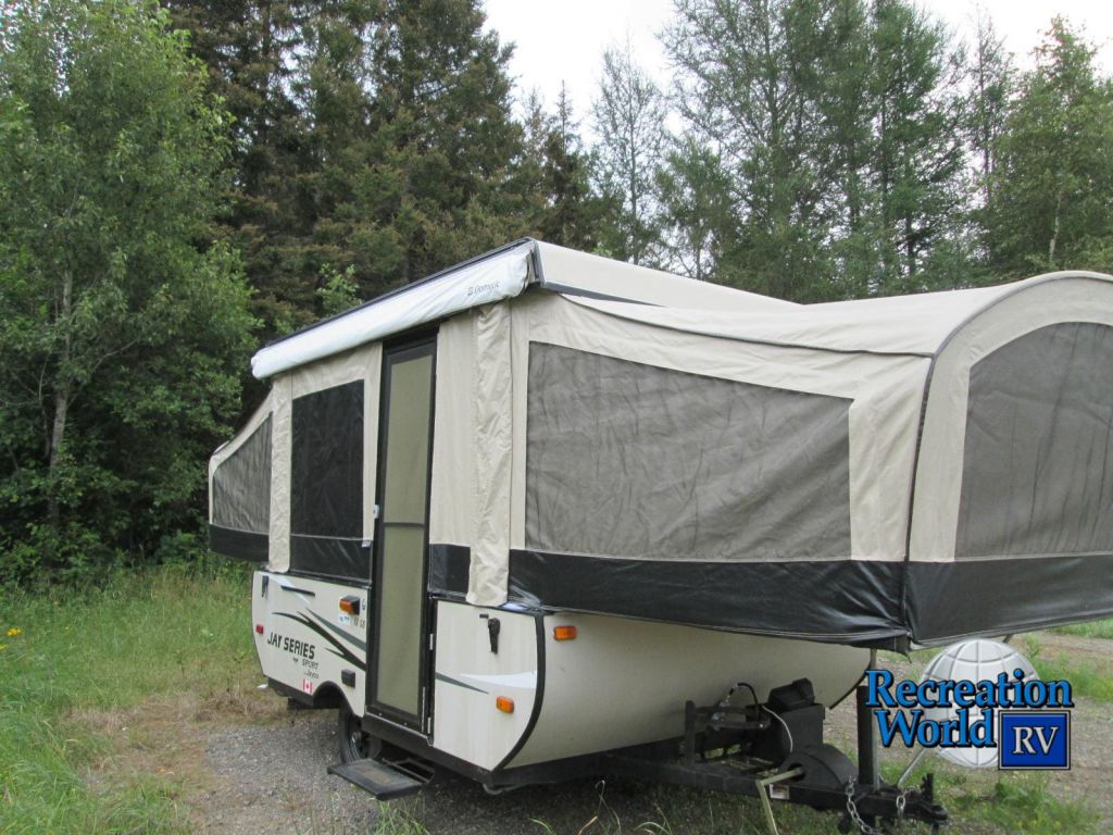 The Jay Series Sport 10SD folding pop-up camper by Jayco offers a rear full tent bed and a front queen tent bed.